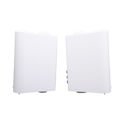 El paquete de altavoces activos está diseñado con controles de volúmen y tono. La potencia de salida nominal es de 20W estable a 8 Ohms. El gabinete está hecho en ABS, la rejilla de metal y el soporte o montaje de metal son de acabado blanco, el montaje se coloca de manera fácil y va incluído.