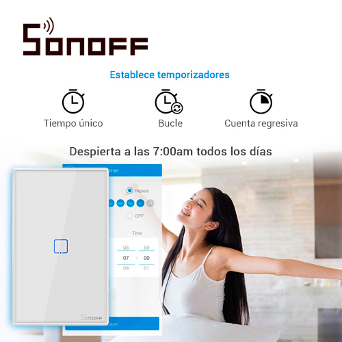 APAGADOR DE PARED TOUCH ON/OFF SONOFF T2US1C (NUEVA VERSIÓN) SMART INALÁMBRICO WIFI PARA SOLUCIÓN DE SMART HOME CON TEMPORIZADOR PARA IOS Y ANDROID COMPATIBLE CON ALEXA/GOOGLE HOME/IFTTT 1CH WIFI 2.4GHZ RF 433 HASTA 2AMP