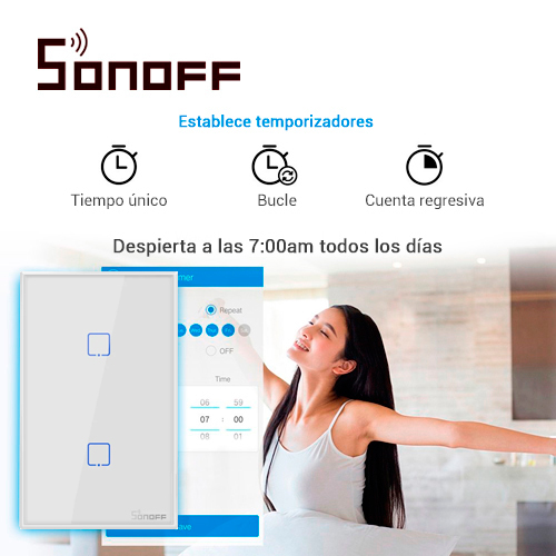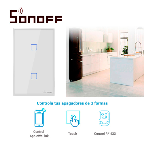 T2US2C SONOFFSonoff TX Series nos permite controlar de forma remota utilizando su teléfono, y los dispositivos conectados con interruptores pueden funcionar de forma independiente. El interruptor se agrega a la aplicación eWelink (iOS y Android) permitiendo el control a través de internet (2G / 3G / 4G / WiFi) dándonos el control absoluto de nuestros dispositivos. Funciona con Amazon Alexa y el Asistente de Google que le permiten encender o apagar sus dispositivos con un comando de voz, perfecto para aquellos que necesitan manejar muchas tareas domésticas simultáneamente. Este interruptor de lujo inteligente cuenta con panel de vidrio templado, que se ilumina en la oscuridad para visualizar los contactos. Cuenta con botones táctiles sensibles que se adjuntan a los interruptores simples y elegantes para garantizar una decoración moderna y agradable en cualquier superficie de la pared. Un ligero toque para facilitar el control. Características: Admite red WIFI 2.4GHz. Tiene 2 salidas de dispositivos. Admite el seguimiento de estado proporcionado por la App EWeLink. Soporte de configuración de escena inteligente para activar y desactivar otros dispositivos inteligentes. Admite temporizadores programados. Funciones con Amazon Alexa, Google Home y IFTTT. Especificaciones: Voltaje máximo: 100-240v AC (50/60Hz) Corriente máxima: 2A /250V por salida 4A/Totales. Potencia máxima: 600W por Salida. Dimensiones: 120 mm (Alto) * 74 mm (Ancho) * 38 mm (Profundo) Material de la caja: Panel de Vidrio Templado PC V0. Estándar inalámbrico: 802.11 b / g / n 2.4GHz, 433MHz. Mecanismo de seguridad: WPA-PSK / WPA2-PSK Peso: 200.0g 2 interruptores por dispositivo.