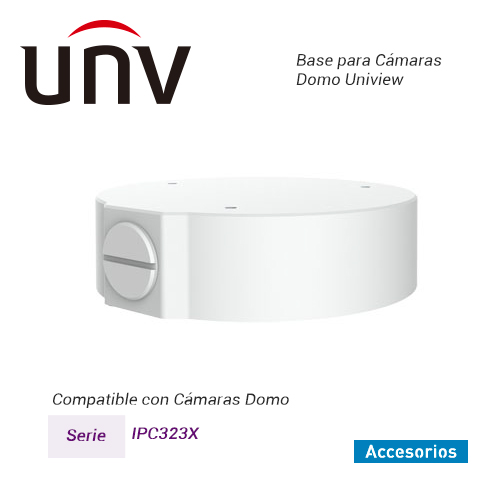 Descripción Descripción TR-JB04-C-IN UNIVIEW Base para domo UNV TR-JB04-C-IN compatible con serie IPC323X Instalación: Pared Dimensiones: 144.8mm * 40mm Peso: 0.3kg(0.66lb) Material: Aleación de aluminioDocumentosFicha técnica