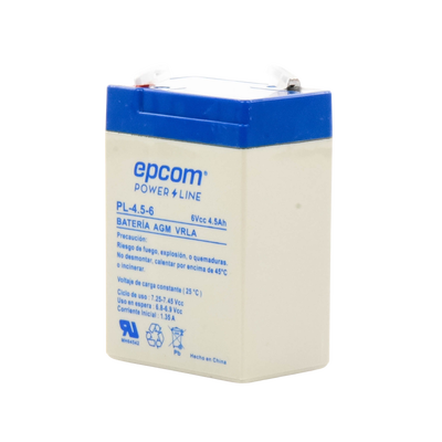La serie de baterías EPCOM POWERLINE, están diseñadas con tecnología AGM-VRLA ( Fibra de vidrio absorbente, con válvulas de regulación), placas de alto rendimiento y electrólito para proporcionar una salida de energía adicional. Las baterías de la serie EPCOM POWERLINE son baterías de respaldo para equipos electrónicos, con una vida útil de diseño flotante de 5 años a 25°C. Aprobado por UL ( MH64542 ).