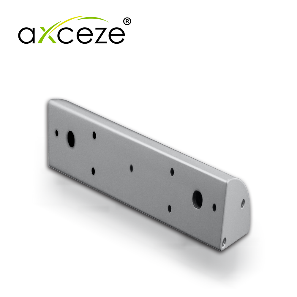 Bracket tipo L ideal para instalar electroimanes de la serie M620 Este tipo de bracket ayuda a realizar la instalación en puertas abatibles que abren hacia adentro. Su fabricación en aluminio lo hace muy ligero y resistente. Se puede instalar en puertas de metal, madera, o con marco ancho.