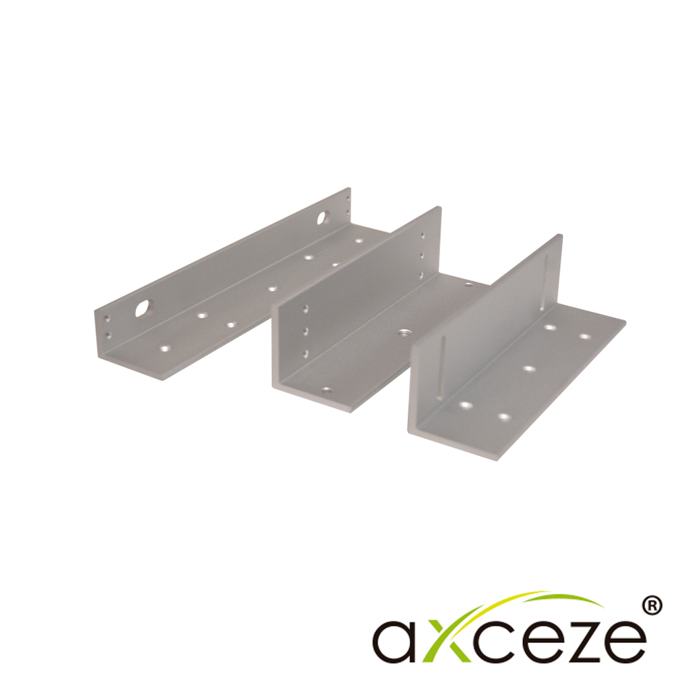 Soporte tipo L y Z para electroimán marca AXCEZE, compatible con la serie M620 Recomendado para instalar en puertas con marco, puertas con apertura hacia adentro. Este juego de brackets soporta tanto el electroiman como la contra GENERALES Dimensiones L -- 250 x 48.8 x 30.4 mm Dimensiones Z-- 180 x 50 x 50 mm Material Aluminio anodizado Peso 0.75Kg