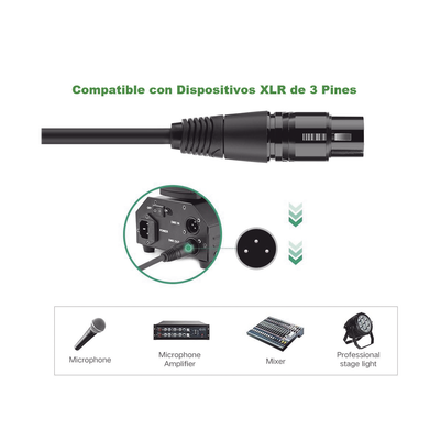 Cable para Micrófono Plug 6.35 mm (1/4 Inch) Macho a XLR Canon Hembra / Núcleo de Cobre / 5 Metros / Alta Calidad / Color Negro