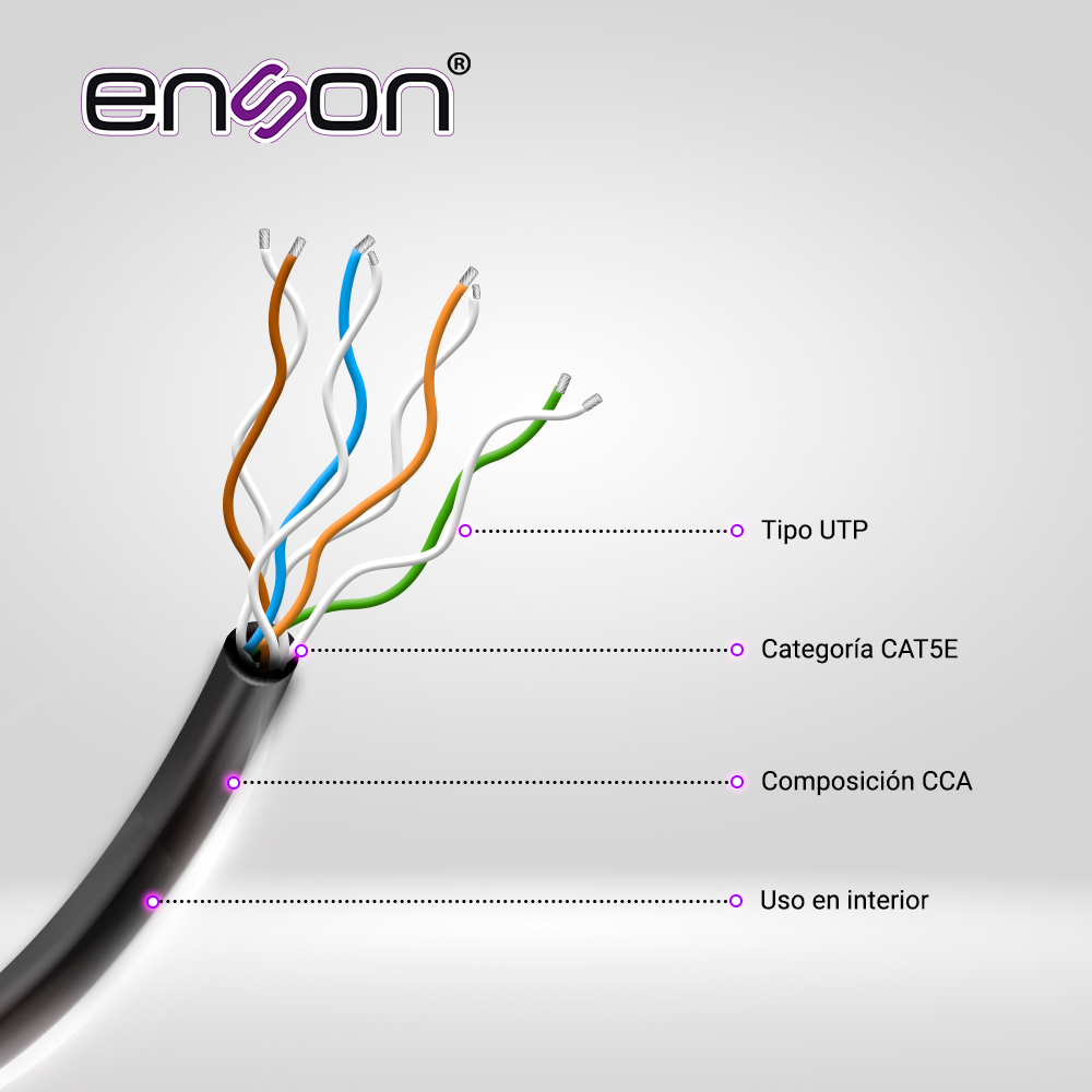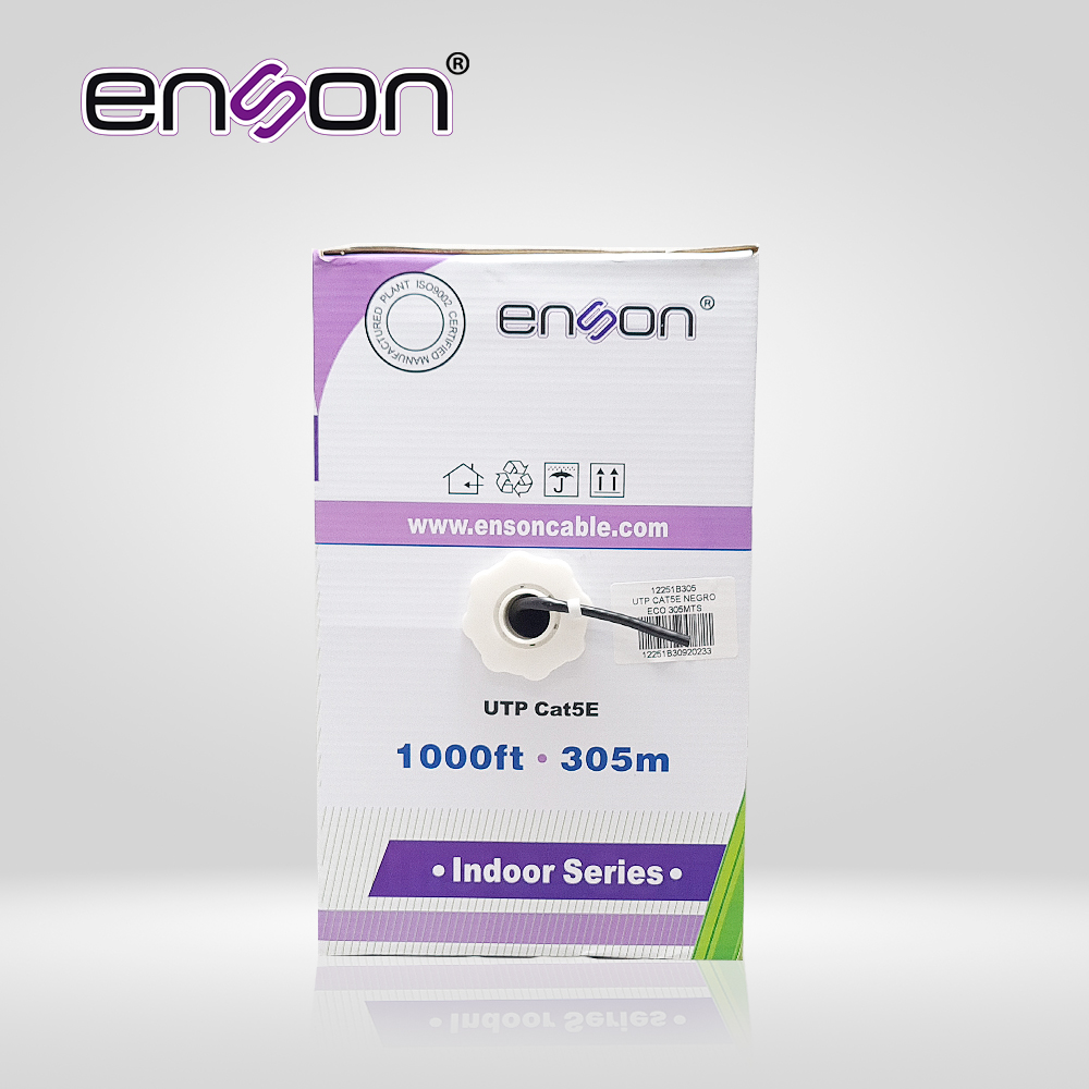 CABLE UTP CAT5E ENSON 12251B305 SERIE ECO CALIBE 24 AWG CCA BOBINA DE 305 METROS FORRO PVC COLOR NEGRO USO INTERIOR RECOMENDADO PARA TRANSMISION DE DATOS BASE 10,100
