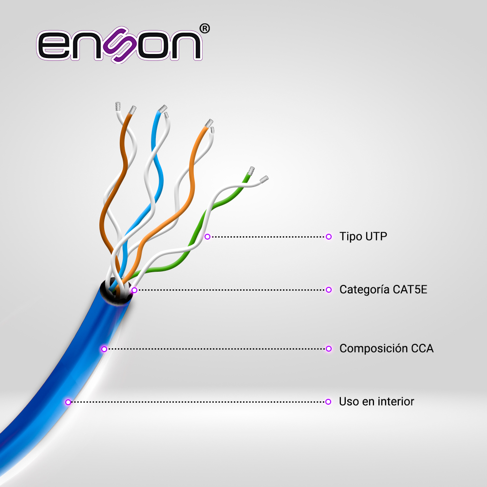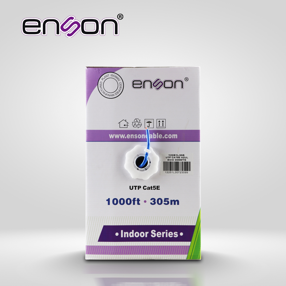 CABLE UTP CAT5E ENSON 12251L305 SERIE ECO CALIBE 24 AWG CCA BOBINA DE 305 METROS FORRO PVC COLOR AZUL USO INTERIOR RECOMENDADO PARA TRANSMISION DE DATOS BASE 10,100