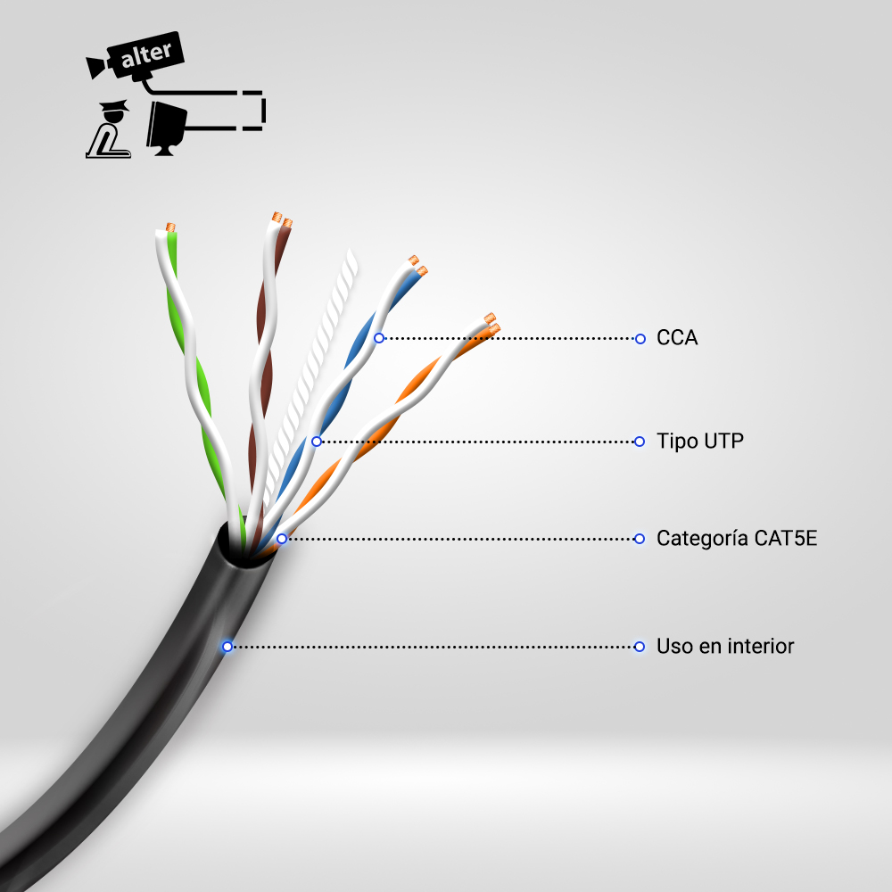 Cable UTP CAT5E MAXICABLE Negro. Cable Ethernet Cat5e UTP (par trenzado sin blindaje) CCA (aluminio revestido de cobre), es calibre 24 AWG en caja de extracción fácil de usar es ideal para su instalación de red. Contiene 305 mts color negro, cable sin blindaje; está libre de conectores, dando al usuario la libertad de personalizar la longitud, el cableado y la aplicación.