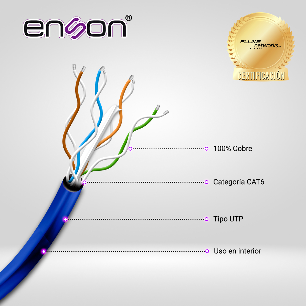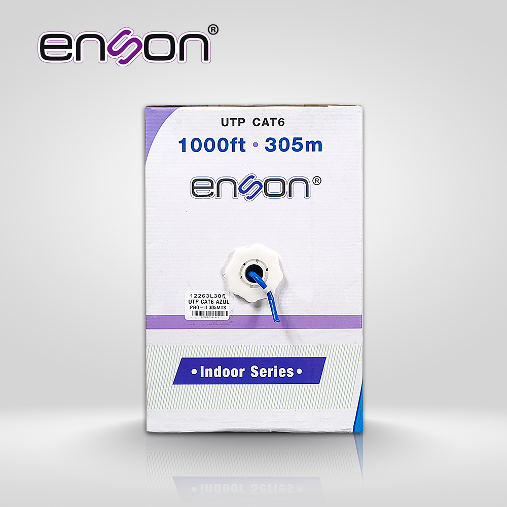 CABLE UTP CAT6 ENSON 12263L305 SERIE PRO-II CALIBE 23 AWG 100% COBRE DE ALTO RENDIMIENTO BOBINA DE 305 METROS FORRO PVC COLOR AZUL USO INTERIOR RECOMENDADO PARA CCTV, VIDEO IP Y REDES BASE 10,100,1000
