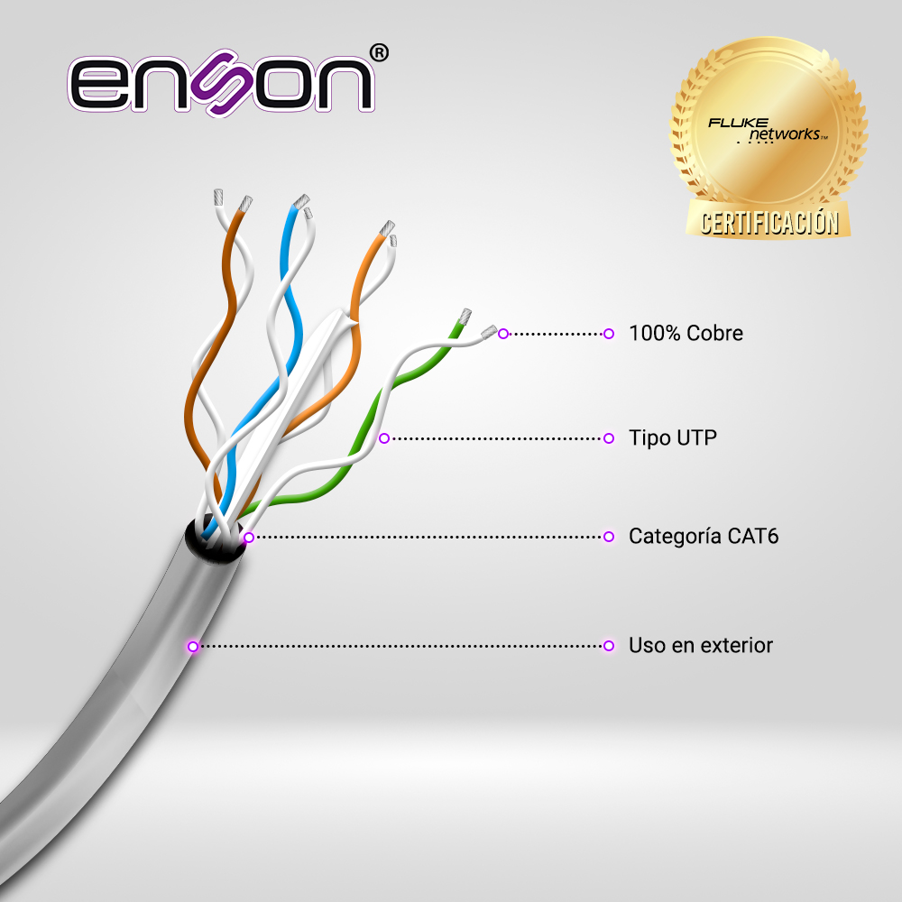 CABLE UTP CAT6 ENSON 13161G305 SERIE PRO-II CALIBE 23 AWG 100% COBRE DE ALTO RENDIMIENTO BOBINA DE 305 METROS FORRO PVC COLOR GRIS USO EXTERIOR RECOMENDADO PARA CCTV, VIDEO IP Y REDES BASE 10,100,1000