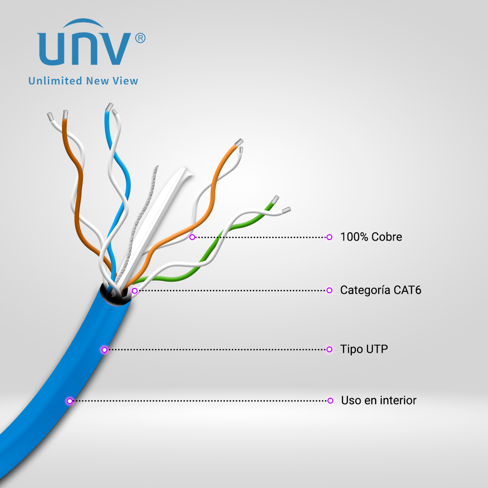 CAB-LC3100 UNIVIEW Especificación: HSYV-6 4x2x0.57 Test standard: ISO/IEC 11801,TIA/EIA 568B.2 Conductor Material: cable solido AWG: 23 Nom.O.D.(mm) 0.57±0.005 mm Aislamiento Material:HDPE Espesor: 0.2±0.02 mm Diámetro: 1.02±0.05 mm Color: Azul / Blanco-Azul