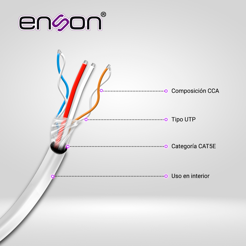 CABLE UTP SIAMES ENSON 51101W500 4C PARA DATOS Y DOS CABLES CALIBRE 18AWG (ROJO Y NEGRO) PARA ALIMENTACIÓN, DISEÑADO PARA SU USO EN SOLUCIONES DE CCTV UNICAMENTE, BOBINA DE 500 METROS COLOR BLANCO PARA SU USO EN EXTERIOR