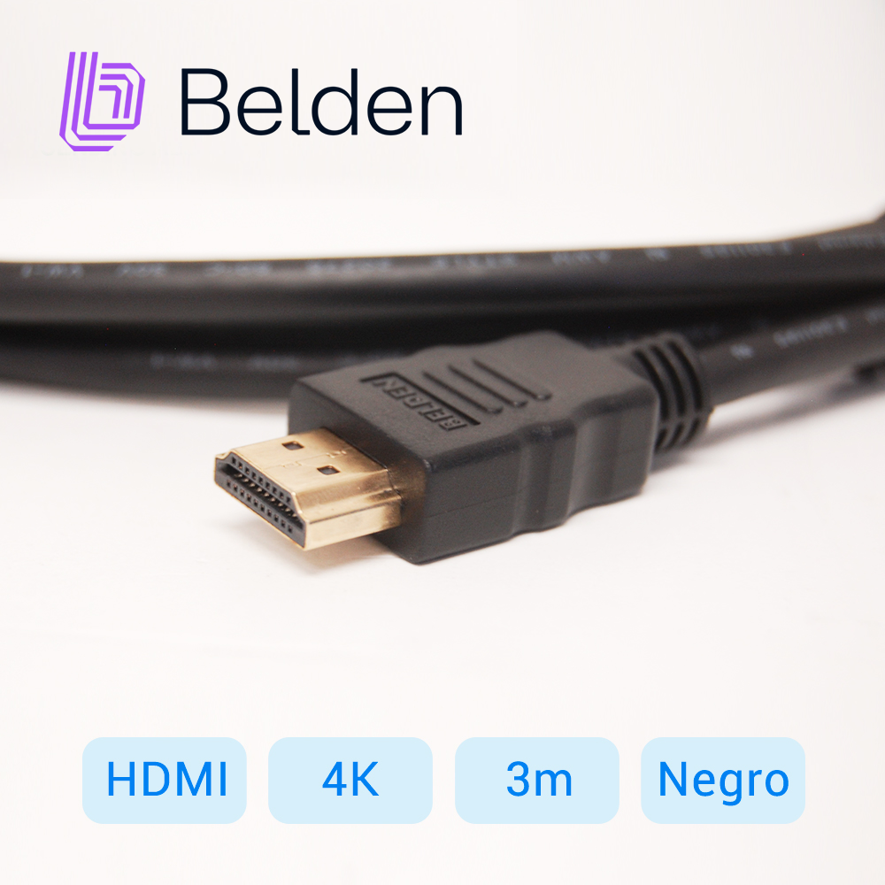 HDE003MB BELDENCABLE VIDEO HDMI BELDEN HDE003MB ALTA VELOCIDAD, 4K, 3 MTR NEGRO Espacio ambiental: Interior Aplicaciones adecuadas Señalización digital, monitores de computadora, proyectores, consolas de juegos, reproductores de DVD Conexión HDMI tipo A Conjunto de cable HDMI compatible con Ethernet de alta velocidad, compatible con 1080p @ 60Hz, 4K UHD @ 30Hz Longitud: 3 metros