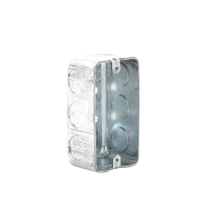 Caja galvanizada tipo chalupa para instalaciones eléctricas.