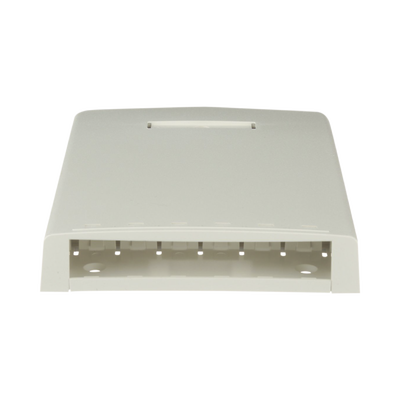Las cajas de montaje en superficie de fibra/multimedia están disponibles en opciones de 6 y 12 puertos e incluyen un accesorio incorporado con un diseño único que asegura el cable en su lugar y puede almacenar hasta 24 metros de cable de fibra óptica con búfer. La caja incluye orificios ciegos laterales y traseros para la entrada de cables. La tapa incluirá un espacio para etiquetas con etiqueta y tapa para identificación que oculta el tornillo que fija la tapa a la base. Las cajas se instalan fácilmente con el adhesivo o los tornillos de montaje suministrados. La caja de 6 puertos incluyen ranuras para iconos sobre los puertos.