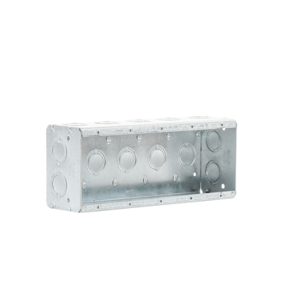 Las cajas multigang de acero galvanizado de 2 1/2' de profundidad con entradas para tubería de 1/2' - 3/4'.