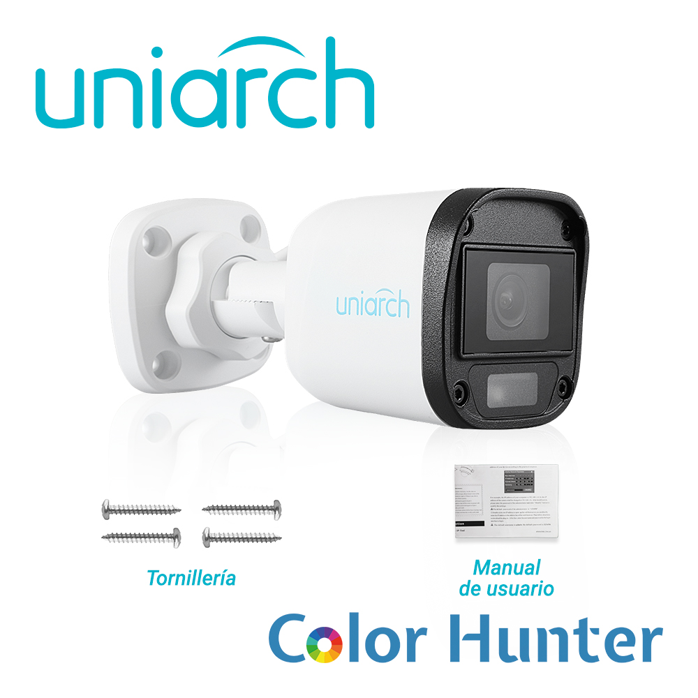 CAMARA ANALOGICA BULLET UNIARCH UAC-B115-F28-W La UAC-B115-F28-W es una cámara analógica mini bala fija ColourHunter HD de 5 MP con un sensor de alto rendimiento de 1/2,7 pulgadas. Admite TVI/AHD/CVI/CVBS, lo que mejora de manera efectiva la adaptabilidad del producto y la diversidad de soluciones de red. La cámara puede lograr un bajo costo, larga distancia, transmisión de video HD de megapíxeles antiinterferencias y de baja demora. La cámara proporciona imágenes en color las 24 horas del día, los 7 días de la semana. Caracteristicas: 5MP HD Lente fija 2,8mm. Cámara 4 en 1: AHD/TVI/CVI/CVBS Filtro de corte IR con interruptor automático (ICR) Función Smart-IR disponible, previene eficazmente la sobreexposición a corta distancia Soporta giro horizontal de la imagen 180°, giro vertical 180°. Soporta configuración OSD, que es fácil de configurar y operar IP67 Alta fiabilidad con diseño a prueba de agua y polvo