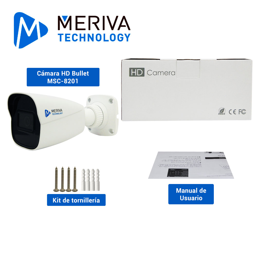 CÁMARA HD BULLET MERIVA TECHNOLOGY MSC-8201 / 8 MP/ 4 EN 1 (AHD/TVI/CVI/CVBS) La cámara bullet o bala MSC-8201 es una cámara 4K (8MP). La cámara es adecuada para las escenas que requieren visualización de imágenes de alta definición, como finanzas, telecomunicaciones, gobierno, escuelas, tiendas, aeropuertos, fábricas, hoteles, etc. Infrarrojos con alcancé de hasta 30 metros, menú OSD y funciones de video como reducción de ruido, balance automático de blancos, control de ganancia automático y un housing con protección IP67. Características principales: Resolución HD 4K (8 MP@ 15 fps). Multi Tecnología AHD / CVI / TVI / CVBS Soporta menú OSD por CoC. Montaje en techo o pared. Protección IP67 Compatible con DVRs HD, CVI, TVI y analógicos Distancia de IR 20 ~ 30 metros.