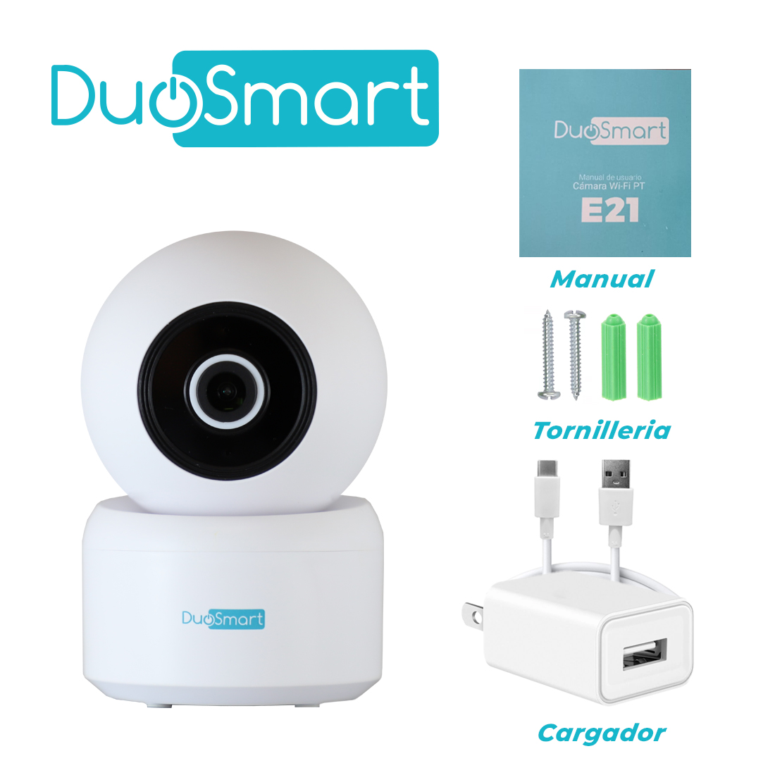 CAMARA INTELIGENTE CON MOVIMIENTO PT WIFI 2.4 GHZ DUOSMART E21 PARA INTERIOR FULL HD 3MP COMPATIBLE CON APP DUOSMART SOPORTA MICROSD DE HASTA 128 GB (NO INCLUIDA) CON AUDIO BIDIRECCIONAL