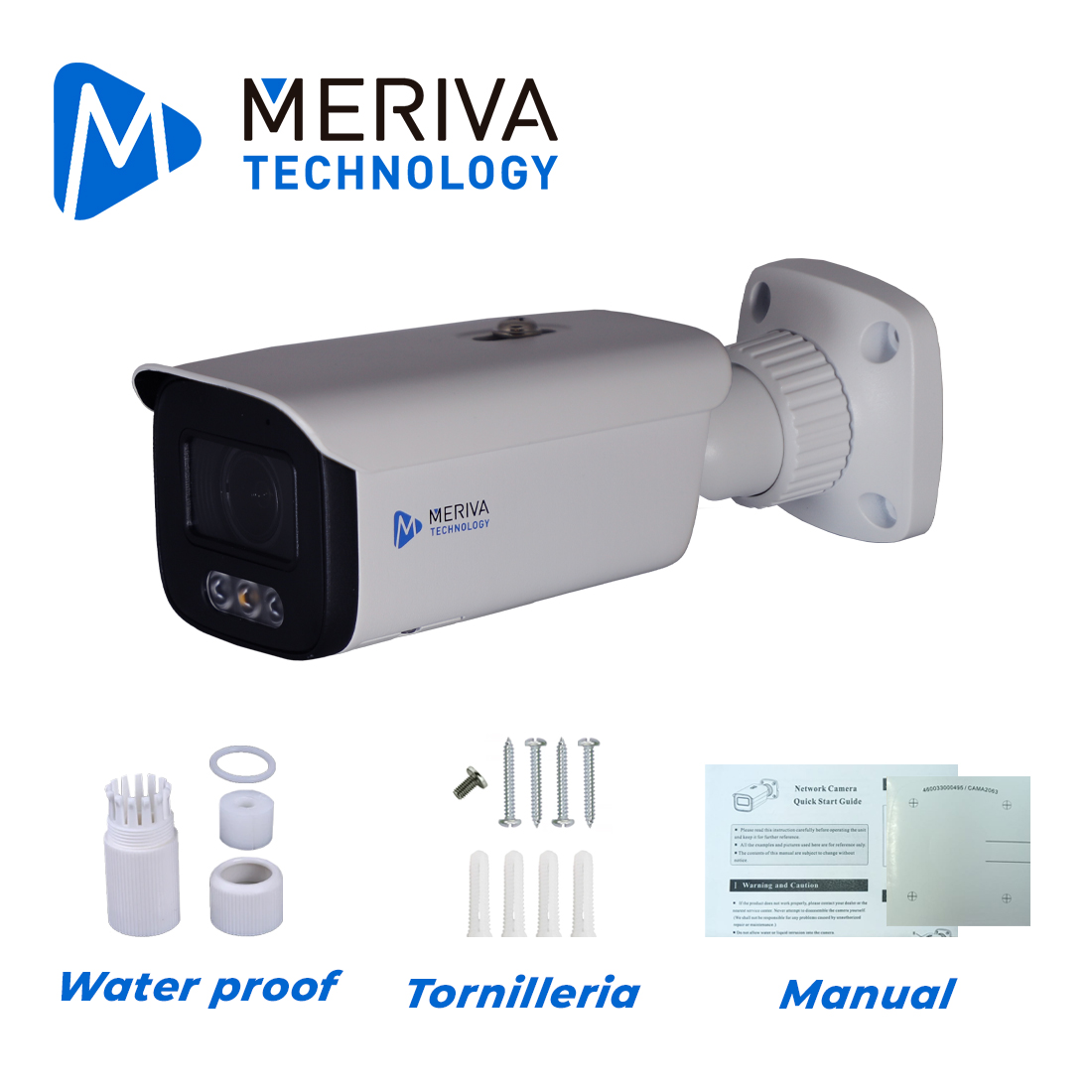 CÁMARA IP BULLET MERIVA TECHNOLOGY MOB-600ZS4D / 6 MP / 2.8-12 MM LENTE MOTORIZADO La cámara Bullet Meriva MOB-600ZS4D cuenta con una resolución 6 MP, está diseñada para soluciones de Video IP que requieren de la inteligencia artificial. Cumple con el protocolo TCP/IP, UDP, RTSP, etc. Alcanza hasta 50 m de IR y 40 m de luz blanca, cuenta con tecnología Plug and Play en su conexión PoE (802.3 af). Caracteristicas: Resolución 6 MP (3200 x 1800) @ 20 fps. Códec de compresión 265 / H.265 / H.264 / H.264. Día / Noche automático ICR. Visualización nocturna 30 ~ 50 m infrarroja y 30 ~ 40 m de luz blanca. Funciones integradas como Real WDR, 3DNR, HLC, BLC entre otras. Soporta triple stream. Micrófono integrado. Entrada de audio. Alimentación 12 VCD / PoE (802.3 af). Protección IP67. DDNS mymeriva.com gratuito. Conexión P2P Meriva Technology. Analíticos con inteligencia artificial. Soporta Micro SD, hasta 256 GB (No incluida). Compatible con iOS y Android. Software NVMS 2.0 gratuito. Soporta Reset por botón.