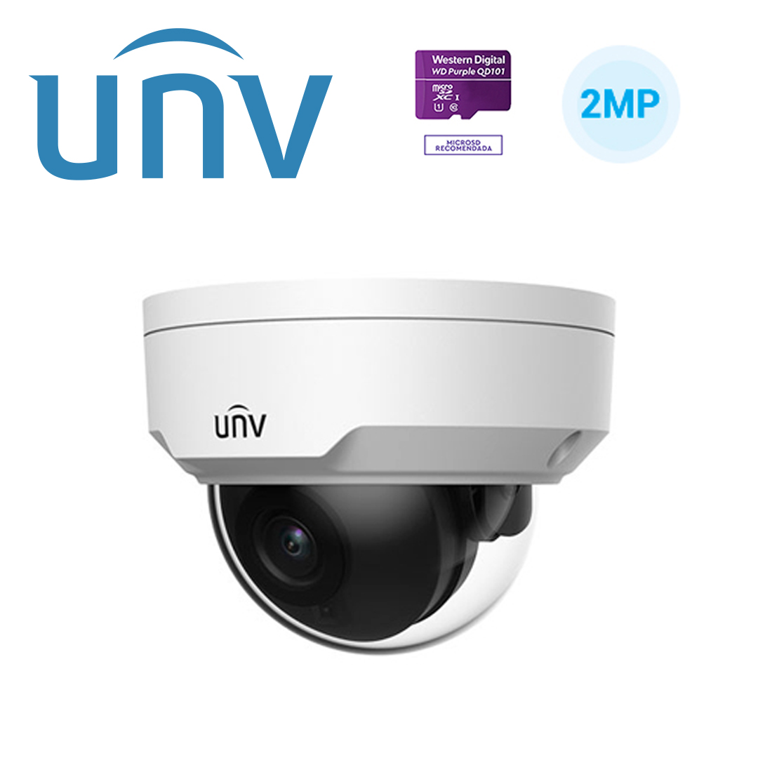 IPC322SB-DF28K-I0 UNIVIEW Cámara IP Domo Alta Definición de 2 MegaPixeles con compresión ULTRA 265: más video en menos espacio; tiene un lente fijo de 2.8 y alcanza 30m con sus Leds Infrarrojos es ideal para interior/exterior gracias a su resistencia IP67 y resistente al vandalismo IK10. Analíticas SIP IA (Smart Intrusion Prevention basadas en inteligencia artificial) Analisis de video basado en Inteligencia artificial, el dispositivo es capaz de activar Cruce de linea o Intrusión utilizando el algoritmo de UNV capaz de detectar siluetas humanas, vehiculos motorizados y no motorizados para reducir falsas alarmas. Analiticas embebidas: Cruce de linea Intrusión Entrada a un área Salida de un área Face capture Características: