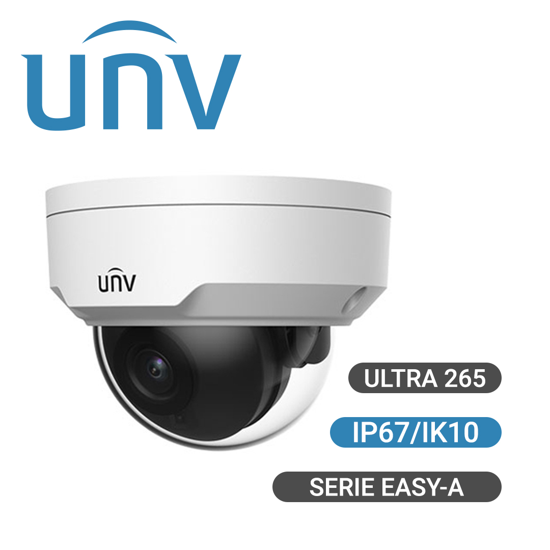 IPC322LB-SF28-A UNIVIEW Cámara IP Domo Alta Definición de 2 MegaPixeles compresión ULTRA 265: más video en menos espacio; cuenta con un lente fijo de 2.8 y alcanza 30m con sus Leds Infrarrojos, ideal para interiores/exteriores con protección IP67 e IK10.