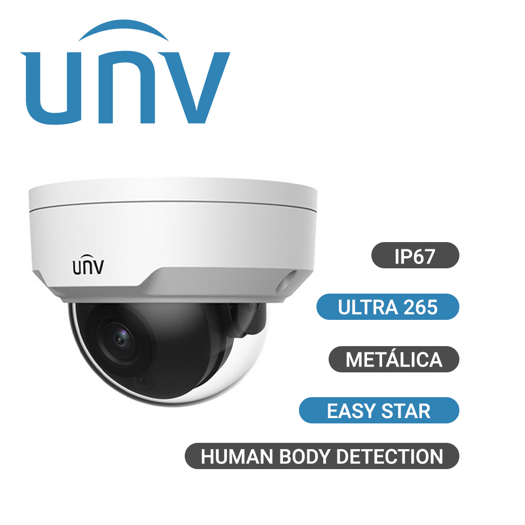Cámara IP Domo Alta Definición de 4 MegaPixeles con compresión ULTRA 265: más video en menos espacio; tiene un lente fijo de 2.8 y alcanza 30m con sus Leds Infrarrojos es ideal para interior/exterior gracias a su resistencia IP67 y resistente al vandalismo IK10.