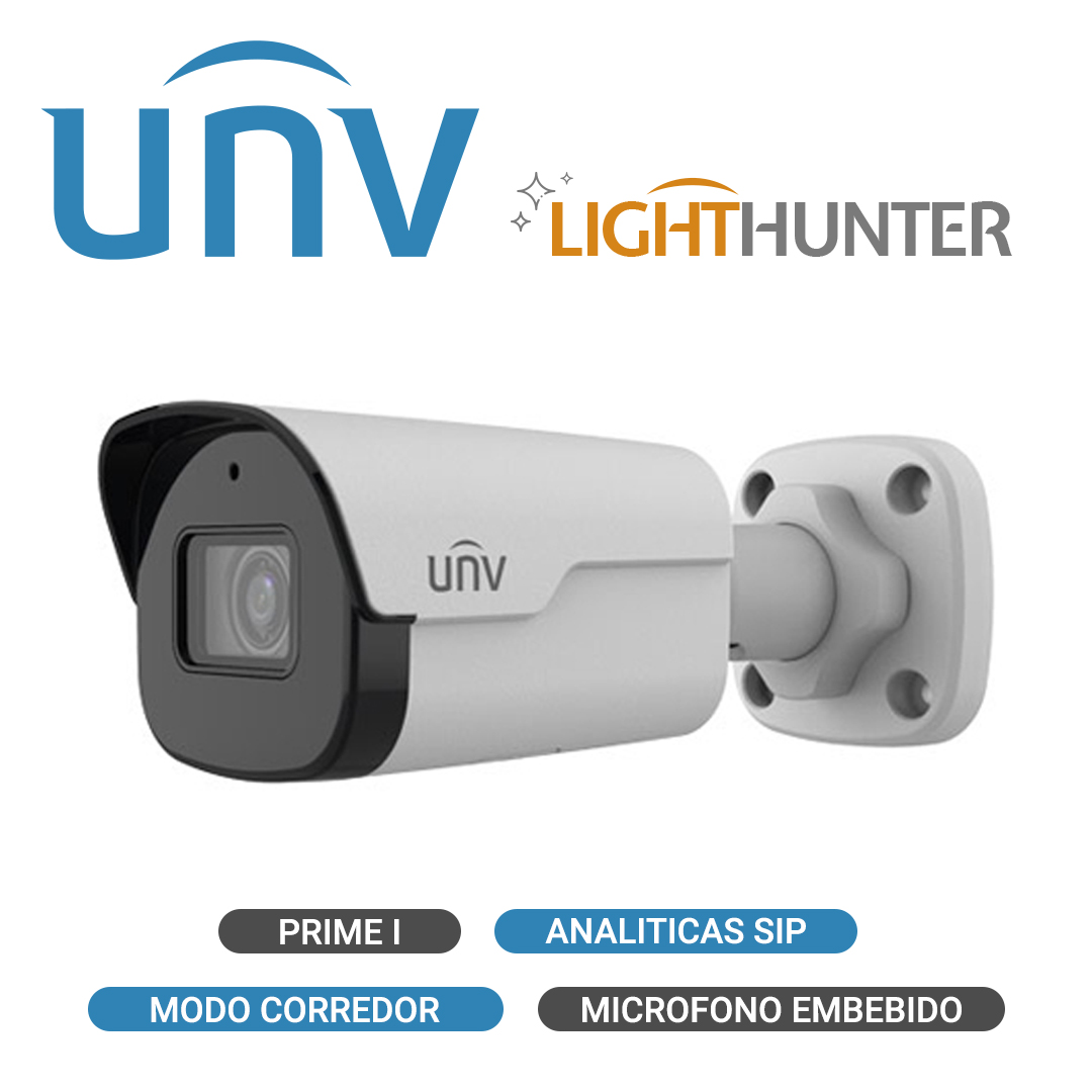 CAMARA IP MINI BULLET ULTRA265 UNV IPC2124SB-ADF28KM-I0 Cámara IP Bullet de Alta Definición de 4 MegaPixeles con compresión ULTRA 265: más video en menos espacio; tiene un lente fijo de 2.8mm y alcanza 30m con sus Leds Infrarrojos es ideal para interior/exterior gracias a su resistencia IP67. Analíticas SIP IA (Smart Intrusion Prevention basadas en inteligencia artificial) Analisis de video basado en Inteligencia artificial, el dispositivo es capaz de activar Cruce de linea o Intrusión utilizando el algoritmo de UNV capaz de detectar siluetas humanas, vehiculos motorizados y no motorizados para reducir falsas alarmas. Analiticas embebidas: Cruce de linea Intrusión Entrada a un área Salida de un área Face capture