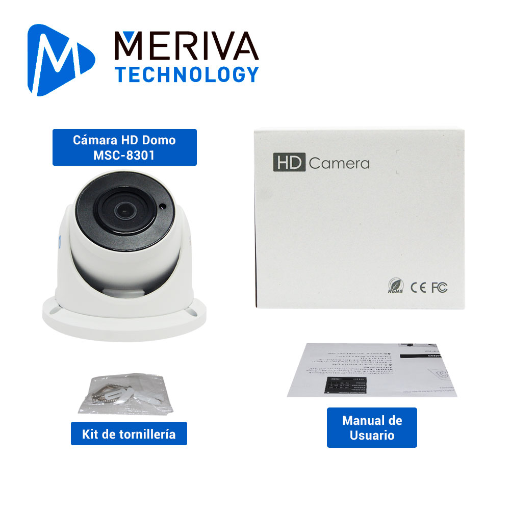 CÁMARA HD DOMO TURRET MERIVA TECHNOLOGY MSC-8301 / 8 MP / 4 EN 1 (AHD/TVI/CVI/CVBS) La cámara Domo MSC-8301 es una cámara 4K (8 MP). La cámara es adecuada para las escenas que requieren visualización de imágenes de alta definición, como finanzas, telecomunicaciones, gobierno, escuelas, tiendas, aeropuertos, fábricas, hoteles, etc. Infrarrojos con alcancé de hasta 30 metros, menú OSD y funciones de video como reducción de ruido, balance automático de blancos, control de ganancia automático y un housing con protección IP67. Características principales: Resolución HD 4K (8 MP@ 15 fps) Multi Tecnología AHD / CVI / TVI / CVBS Soporta menú OSD por CoC. Montaje en techo o pared. Protección IP67 Compatible con DVRs AHD, CVI, TVI y analógicos. Distancia de IR 20 ~ 30 Metros Carcasa metálica.
