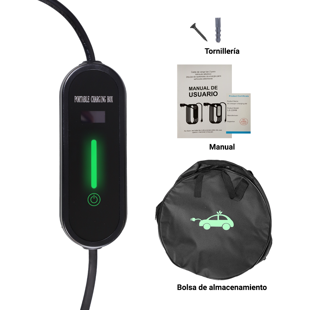 CARGADOR DE VIAJE REGULABLE EV-OMB121 ALTER CONECTOR TIPO 2 CON ENTRADA/SALIDA 120VCA POTENCIA MAX 1.9 KW CON CLAVIJA UNIVERSAL TIPO NEMA 5-15P