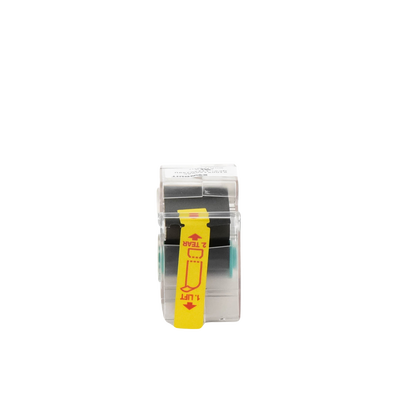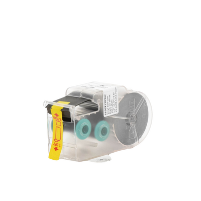 La etiqueta autolaminable de transferencia térmica S100X150VAC incluye un área de impresión blanca y un sobrelaminado transparente para proteger la leyenda y facilitar su identificación. Tiene un tamaño específico para aplicaciones de alambres y cables. El casete contiene un dispositivo de memoria integrado para el formateo automático, la recuperación de la última leyenda utilizada y el número de etiquetas restantes.