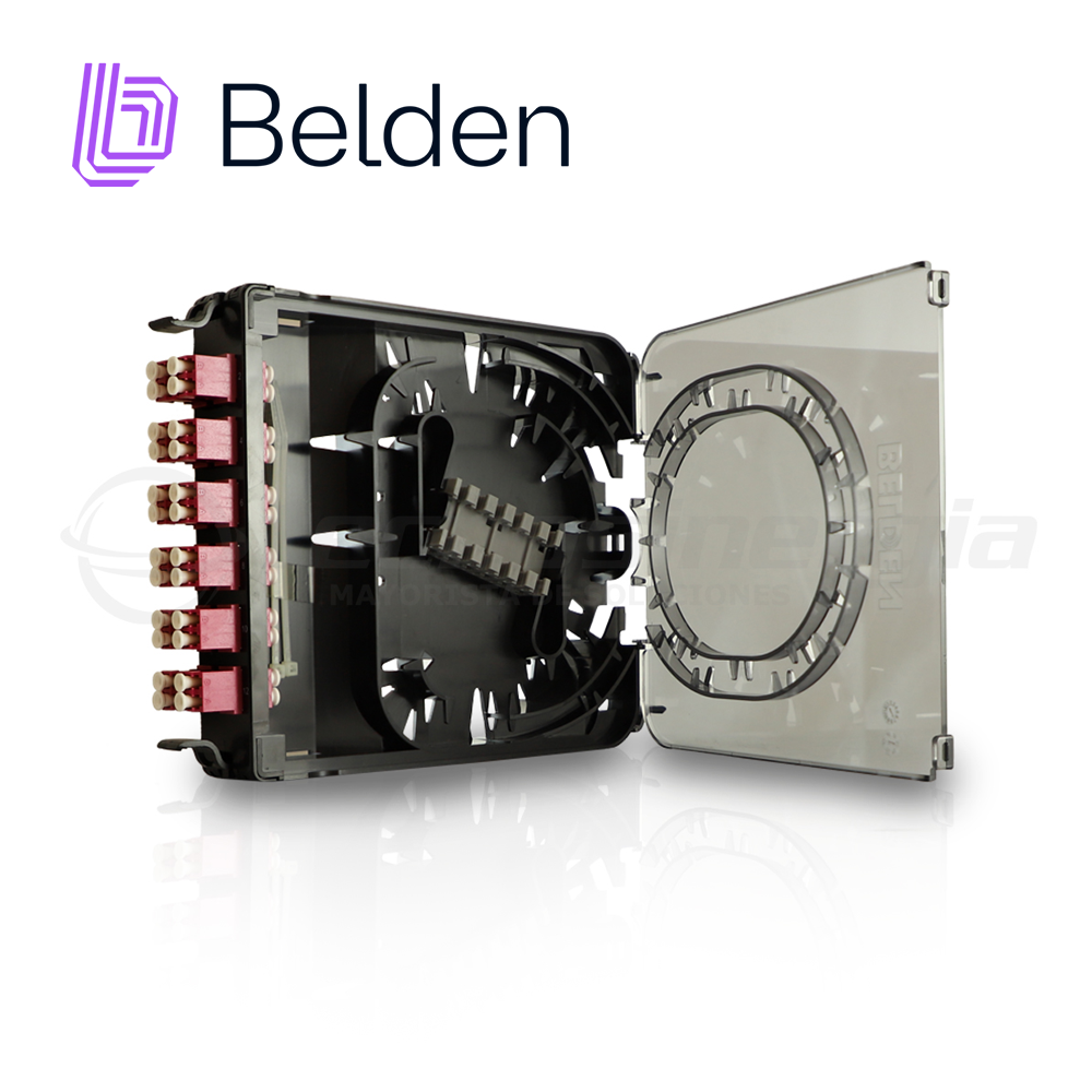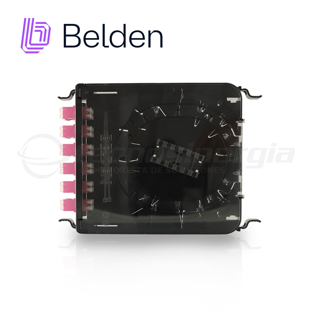 FC4X12LDFS BELDENCassette de empalme FX ECX OM4 12 puertos (12-24 fibras). Uso interior Aplicaciones adecuadas: Soluciones FiberExpress, red troncal, sala de telecomunicaciones, sala de distribución principal, centros de datos Partes relacionadas Paneles FX ECX, FX Pigtails, FX Brilliance Color de conector erika violeta Tipo de conector LC Duplex 12 puertos 24 hilos de fibra optica Tipo de fibra OM4
