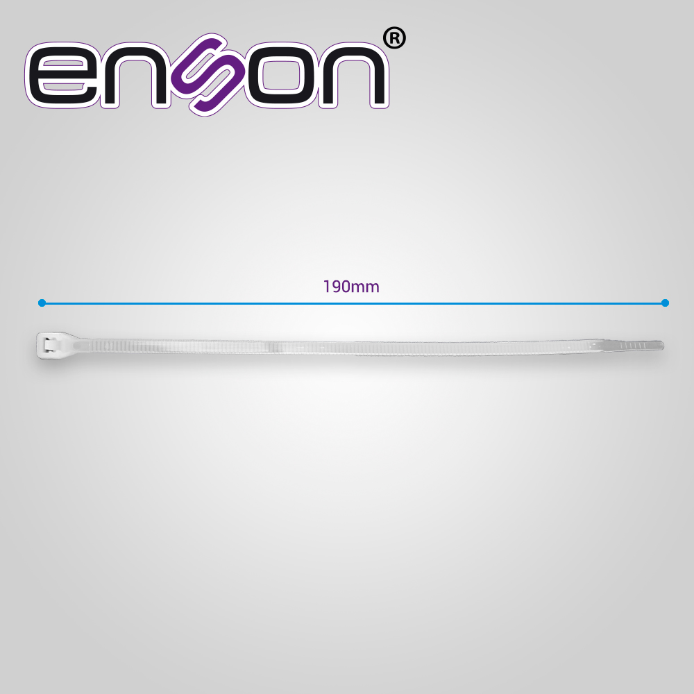 CINCHOS DE NYLON ENSON ENS-CH190W La forma más fácil de organizar cables, sujetar objetos y miles de usos en los cuales te pueden ayudar. Simplemente hay que cerrarlo y listo, su gran resistencia será de gran utilidad para tus instalaciones y reparaciones en hogar y oficina. Características Material: Nylon 66 Ancho: 4.8 mm Largo: 190 mm Diámetro mínimo y máximo: 3 a 46 mm Resistencia de tensión: 22 Kgs Color: natural