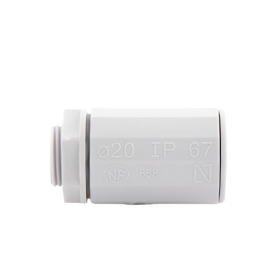 - Conector de tubería PVC de 20 mm a caja IP55.