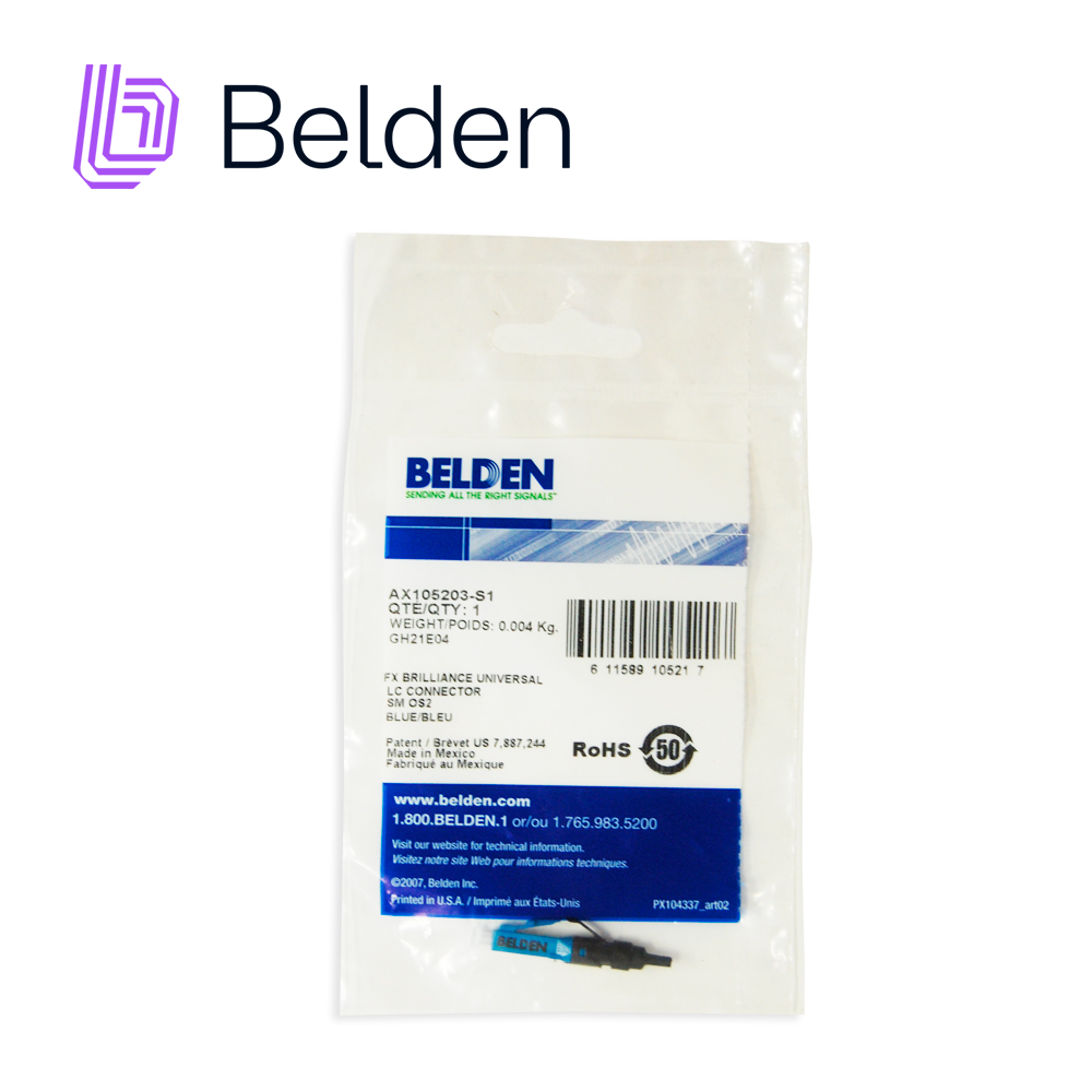 Descripción Descripción AX105203-S1 BELDENFX Brilliance Conector universal instalable en campo LC Tipo de fibra: OS2 Monomodo Uso: Interior Color de conector: Azul Con soporte para 250 um (usando el kit Breakout) 9/125 micrasDocumentosFicha técnica