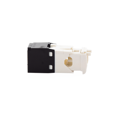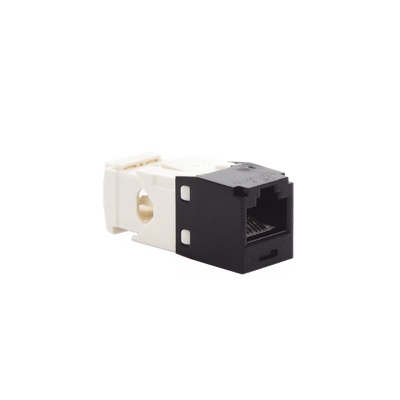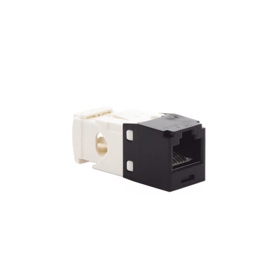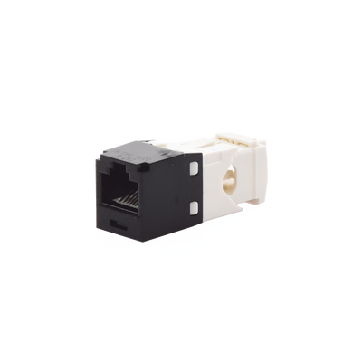 El módulo de conector UTP Categoría 6/Clase E de 8 posiciones, se termina en cable de 4 pares 22 - 26 AWG de par trenzado sin blindaje de 100 ohms y no requiere el uso de una herramienta de impacto. Los módulos de conector UTP usan un método de terminación de movimiento hacia adelante para optimizar el rendimiento al mantener la geometría del par de cables mientras se elimina el destrenzado del conductor. La tapa de terminación esta codificada por color blanco para designar el rendimiento de la Categoría 6 e incluye una etiqueta universal codificada para los esquemas de cableado T568A y T568B.