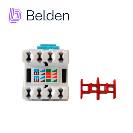 AX101326 BELDENJack modular RJ-45 categoria 6 Espacio ambiental: Interior Aplicaciones adecuadas: Sistema IBDN 2400, 3600 y 4800, TIA Categoría 6 , ISO Clase E, 1000 BASE-T Características físicas (en general) Altura:0.88 in Anchura:0.64 in Profundidad:1.29 in Esquema de cableado:T568A / B Tipo:KeyConnect Compatibilidad de herramientas:Herramienta de conexión Belden 110, estación de terminación MediaFlex Partes relacionadas:Compatible con las placas frontales, adaptadores, cajas y paneles de conexión de KeyConnect Color Azul