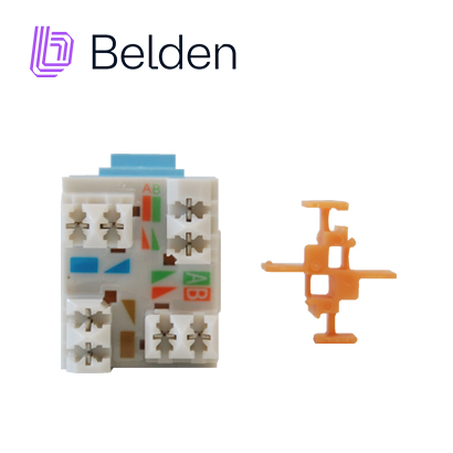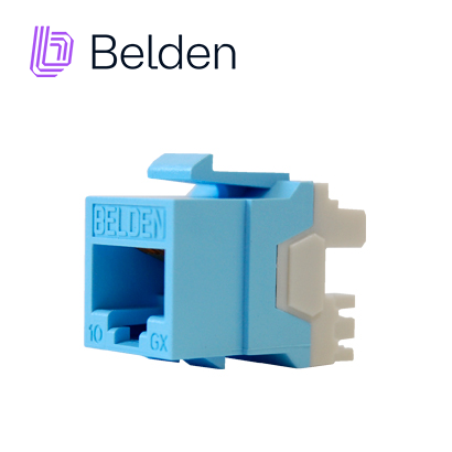 AX102288 BELDENJack modular RJ-45 categoria 6A Espacio ambiental: Interior Aplicaciones adecuadas:Sistema IBDN 10GX, TIA Categoría 6A, ISO Clase EA, 10GBASE-T Características físicas (en general) Altura:0.9 in Anchura:0.675 in Profundidad:1.17 in Esquema de cableado:T568A / B Tipo:KeyConnect Compatibilidad de herramientas:Herramienta de conexión Belden 110. Partes relacionadas:Compatible con las placas frontales, adaptadores, cajas y paneles de conexión de KeyConnect Color Azul