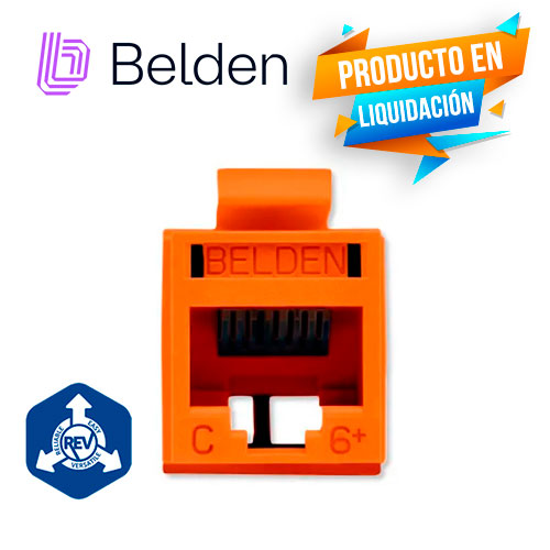 RV6MJKUOR-S1 BELDENJack modular REVConnect CAT6 UTP, T568 A / B Espacio ambiental: Interior Aplicaciones adecuadas Sistemas 2400, 3600, 4800, TIA Categoría 6, ISO Clase E, 1GBASE-T Esquema de cableado: T568A / B Embalaje: Empaquetado individualmente en una bolsa de plástico. Tipo: KeyConnect Compatibilidad de herramientas: Herramienta de terminación REVConnect (p / n RVUTT01) Jack Compatibilidad: RJ45, RJ11 Categoría de datos: Categoría 6 Partes relacionadas: Compatible con placas frontales, adaptadores, cajas y paneles de conexión KeyConnect Color Naranja