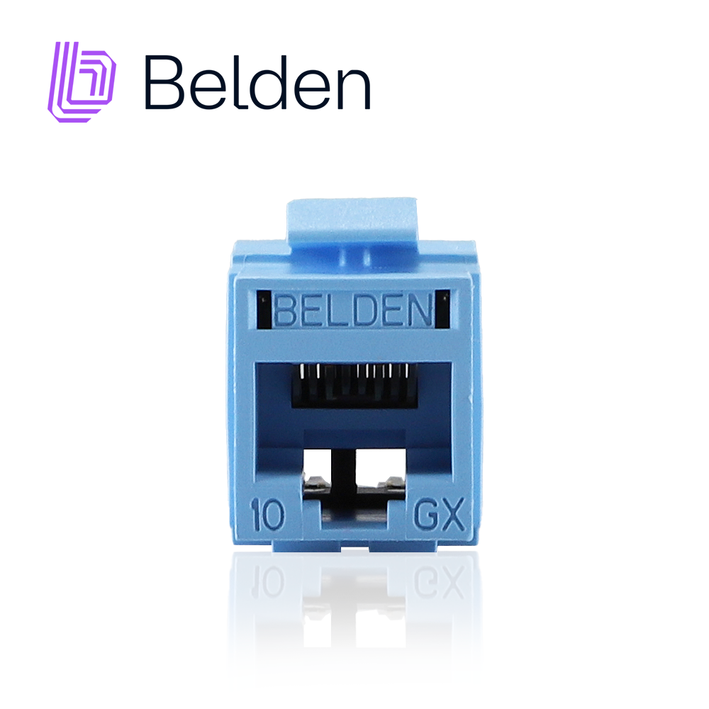 RVAMJKUTB-S1 BELDEN Jack modular categoría 6A Azul Conector tipo RJ45 para placas de pared y patch panel BELDEN KeyConnect. Esquema de cableado TIA568A/B. Uso interior Aplicaciones adecuadas:Sistema 10GX, TIA Categoría 6A, Clase ISO EA, 10GBASE-T Embalaje:Envasado individualmente en una bolsa de plástico. Plug / Jack Compatibilidad:RJ45, RJ11 Especificación IEEE:Power over Ethernet (PoE) IEEE 802.3at tipo 1 y 2 (hasta 30W), IEEE802.3bt / D1.7 tipo 3 y 4 (hasta 100W), CISCO UPOE (hasta 60W), Power over HDBaseTTM (hasta 100W) Partes relacionadas:Compatible con las placas frontales, adaptadores, cajas y paneles de conexión de KeyConnect Sugerencia de herramienta:RVUTT01 / Herramienta terminación universal REV CONNECT