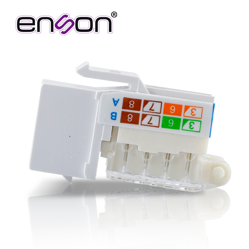 Descripción. El Jack EPRO-TLJACK5E-WH nos facilitan la terminación de nodos al no requerir de ninguna herramienta para rematar el cableado UTP con el mismo, ya que cuenta con una tapas y seguros que presionan y aseguran los cables a su lugar final, teniendo únicamente que cortar con pinzas o tijeras el sobrante de conductor. Compatibles con todos los cables CAT5E Caracteristicas. EPRO-TLJACK5E-BL ENSON Conector Jack . Categoría 5E. Color blanco No se requieren ponchadora. Fácil uso.