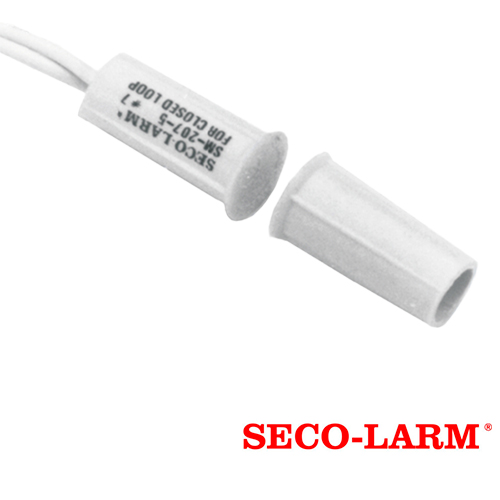 CONTACTO MAGNETICO CABLEADO SECO-LARM SM-207-5Q/W NORMALMENTE CERRADO DE MONTAJE A PRESION DIAMETRO DE 3/8 DE PULGADA CON INTERRUPTOR CORTO E IMAN CORTO COMPATIBLE CON CUALQUIER SISTEMA DE ALARMAS El contacto magnético de la marca Seco-larm SM-207-5Q/W cuenta con un diseño muy estetico ya que permite ocultar el sensor dentro del marco de la puerta y cable de conexión entre sus terminales haciendolo así mas discreto y esteticamente visual. Compatible con cualquier sistema de alarma del mercado y aplicaciones de control de acceso. Características Contactos magnéticos en miniatura de montaje en superficie tipo brida, perfecto para puertas corredizas y ventanas donde el espacio es limitado Montaje de tornillo o adhesivo (cinta adhesiva incluida) La brida de montaje se rompe para obtener un tamaño extra en miniatura Caja de plástico ABS resistente a la intemperie de alto impacto El interruptor de leng¼eta de contacto es SPST, rodio desactivado en la capa inferior de oro para una vida útil máslarga Para circuitos cerrados 19mm GAP (Separación de contacto) Los cables de 38 cm se extienden desde el lado del interruptor Tornillos de montaje incluidos Especificaciones Tipo de circuito: Lazo cerrado Configuracion electrica N.A. (SPST) 10mm GAP (Separación de contacto) Connectores 38cm Cables Color: Blanco Material: Caja Plástico ABS de Alto Impacto/compuesto epoxi Contactos: Rodio desactivado en chapado de oro Puntuación de contactos: 1.0A@10V C.C. (max.) 10W (max.) Temperatura: -15°~160° F (-25°~70° C) Ciclos de Conmutación: 50 Milliones (0.1mA@5V C.C.) Dimensiones: Interruptor (19 x11 mm) imán (19 x11 mm) Tipo de imán Alnico: 5