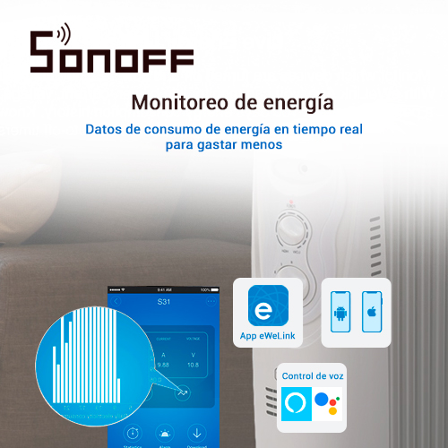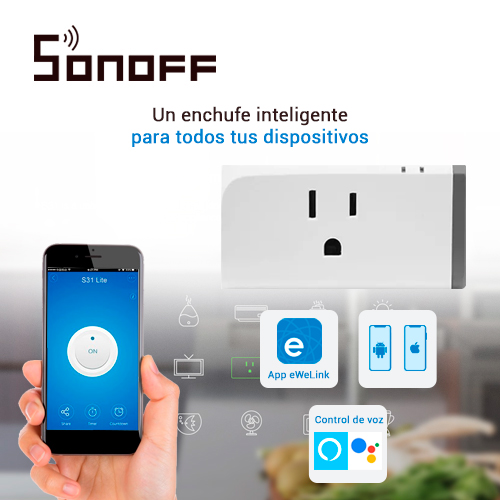 SONOFF S31 Con el enchufe inteligente Sonoff S31 US, puede realizar una medición de la corriente y el voltaje en tiempo real de sus electrodomésticos en la aplicación. También puede medir el consumo de electricidad durante un período específico. Además, puede establecer el umbral de potencia, corriente y valor de voltaje para sus aparatos. Una vez que alcance cualquiera de los valores de umbral, la salida wifi controlada por control remoto apagará automáticamente sus aparatos.Sonoff S31 US hace que todos los dispositivos sean inteligentes. Siempre con que el teléfono móvil tenga red (2G / 3G / 4G / WiFi), los usuarios podrán controlar remotamente los dispositivos y encenderlos desde cualquier lugar en cualquier momento, además de poder establecer temporizadores de todo tipo para el control de estos.Características: Admite red WIFI Admite el seguimiento de estado: estado del dispositivo proporcionado por la App EWeLink. Encender / apagar de forma inalámbrica en cualquier lugar, en cualquier momento. Proporcione datos energía / corriente / voltaje en tiempo real de sus aparatos. Proporcionar datos de consumo de energía históricos de 100 días y factura eléctrica. Establezca el valor limitado de potencia / corriente / voltaje en apagado automático, proteja de la sobrecarga. El estado del dispositivo se muestra de forma síncrona en su teléfono. Soporta un máximo de 8 tareas programadas / temporizadas de cuenta atrás Comparte el control con tu familia. Funciona con Amazon Echo, Google Home e IFTTT (requiere suscripción a eWeLink Advanced)