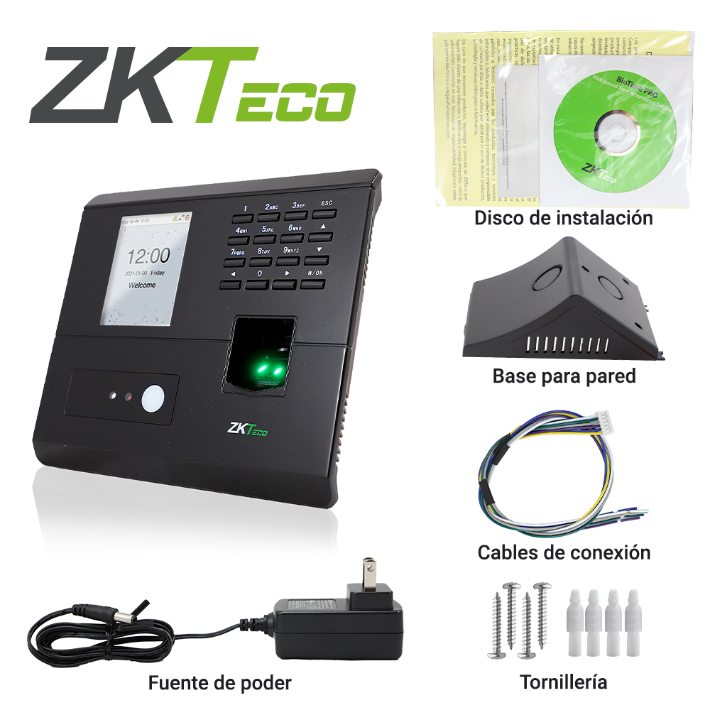 CONTROL DE ASISTENCIA Y ACCESO ZKTECO MB10-VL POR RECONOCIMIENTO FACIAL VISIBLE LIGHT ALMACENA HASTA 100 ROSTROS / 500 HUELLAS / 50,000 EVENTOS SALIDA DE RELEVADOR PARA CONTROLAR UNA PUERTA Y UN BOTON DE SALIDA COMPATIBLE CON BIO TIME CLOUD 2.0 / BIOTIME PRO / ZKBIO CVACCESS MODULO DE ASISTENCIA.