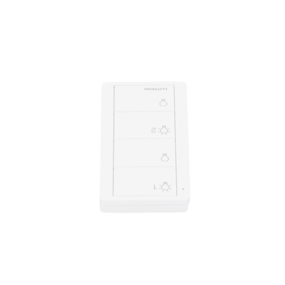 Elija entre tres opciones • Control de atenuación - misma funcionalidad (encendido/apagado total y bajar/subir) de un control Pico estándar, pero con un estético diseño de 4 botones • Dos grupos de control de interruptores - Controle dos grupos de luces independientes el uno del otro • Control de tres escenas - Puede crear tres diferentes escenas, así como apagar las luces Recomendable ver lista de compatibilidad para tipos de focos.