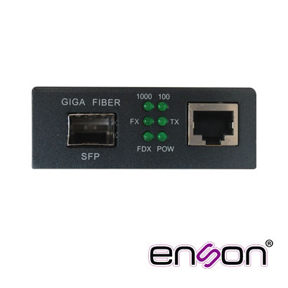 ENS-MC100SFP ENSONConvertidor de fibra SFP a cobre Tipo de fibra multimodo, monomodo Velocidad 1000 Mbps Conector: SFP Distancia: Depende del Gbic Temperatura: 0-50 grados centigrados Puerto ethernet: Standard IEEE802.3, IEEE802.3u, IEEE802.3ab, IEEE802.3x