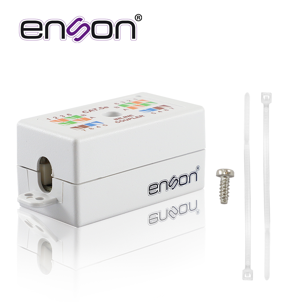 Los acopladores de línea RJ45 de ENSON ofrecen una solución práctica, sencilla y muy eficaz para unir dos cables sin tener que reemplazar los cables existentes, fabricados con materiales de alta calidad para mayor durabilidad. Características Generales: Caja de conexión para unir cables UTP Ethernet.Estilo: De impacto. Nivel de rendimiento: Cat 5eEsquema de cableado: T568A/T568B. Tipo: Sin blindaje. Herramienta recomendada: PINZAS PONCHADORAS DE JACK PUNCHTOOL ENSON ENS-TL057Código CBAH1ENS07