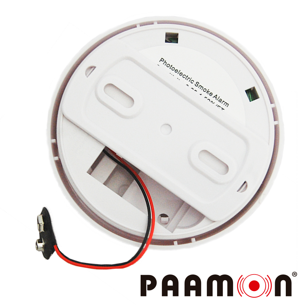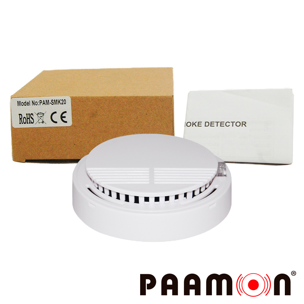 DETECTOR DE HUMO PAAMON PAM-SMK20 INALAMBRICO / AUTONOMO / MONTAJE EN TECHO O PARED / FÁCIL INSTALACIÓN / RANGO DE DETECCIÓN 25MTS CUADRADOS/ ALIMENTACION POR MEDIO DE BATERIAS La serie de HUMO AUTONÓMO PAAMON PAM-SMK20 es un dispositivo electrónico de alta tecnología que permite detectar y dar alarmas en presencia de humo originado por combustión. Este se alimenta por medio de baterías por lo que es totalmente autónomo. Los detectores de humo utilizan un principio de funcionamiento fotoeléctrico que se resume de la siguiente manera: El sensor de humo está constituido por una cámara cuyo interior está en contacto con el aire exterior. En uno de sus extremos existe una fuente luminosa y frente a ella existe un detector luminoso, ambos funcionan como una barrera de luz. Cuando el humo ingresa a la cámara, el detector detecta menos luz debido al efecto del humo. Esta variación de luz es detectada y procesada por un circuito electrónico, activando de esta forma una sirena o un estrobo.
