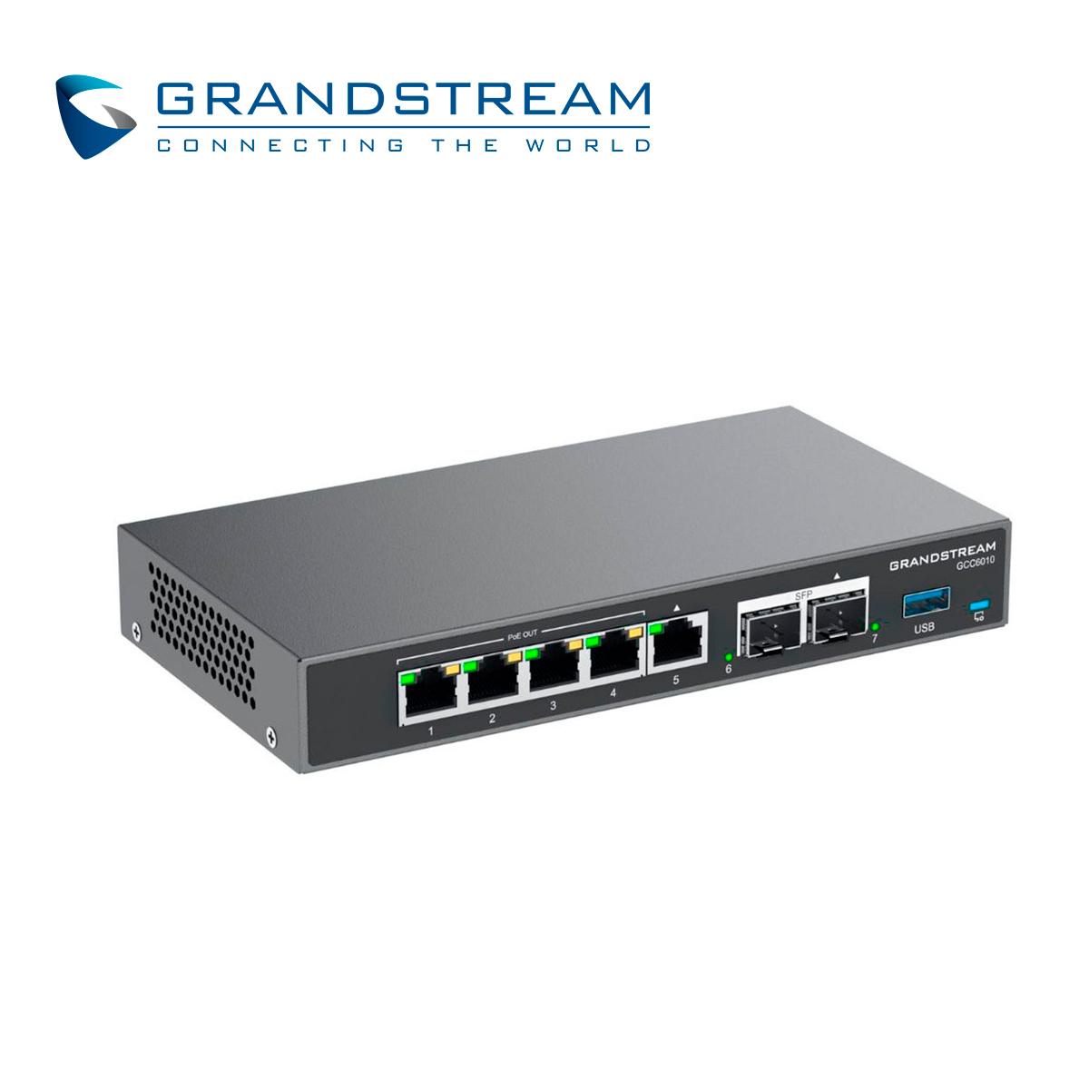 DISPOSITIVO 4 EN 1 GRANDSTREAM GCC6010 CONMUTADOR IP / FIREWALL / RUTEADOR VPN / SWITCH 5 PUERTOS GIGA WAN/LAN / 4 PUERTOS POE AF/AT / 2 PUERTOS SFP 2.5GBPS / 12 USUARIOS / 4 LLAMADAS SIMULTANEAS / ADMINISTRABLE CLOUD GDMS