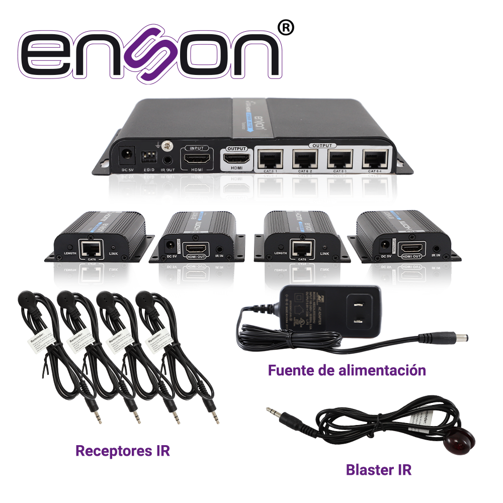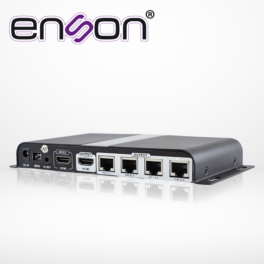DISTRIBUIDOR EXTENSOR HDMI ENSON ENS-EX704 CON 4 EXTENSORES DE HASTA 40MTS CON CABLE 100% COBRE CAT6 A 1080P SALIDA HDMI LOCAL HDMI-LOOP Y CONTROL DE IR