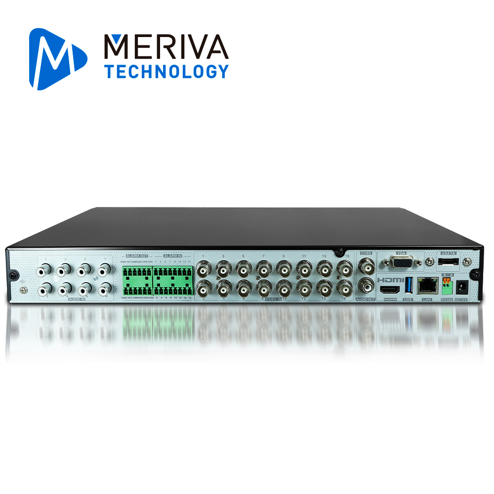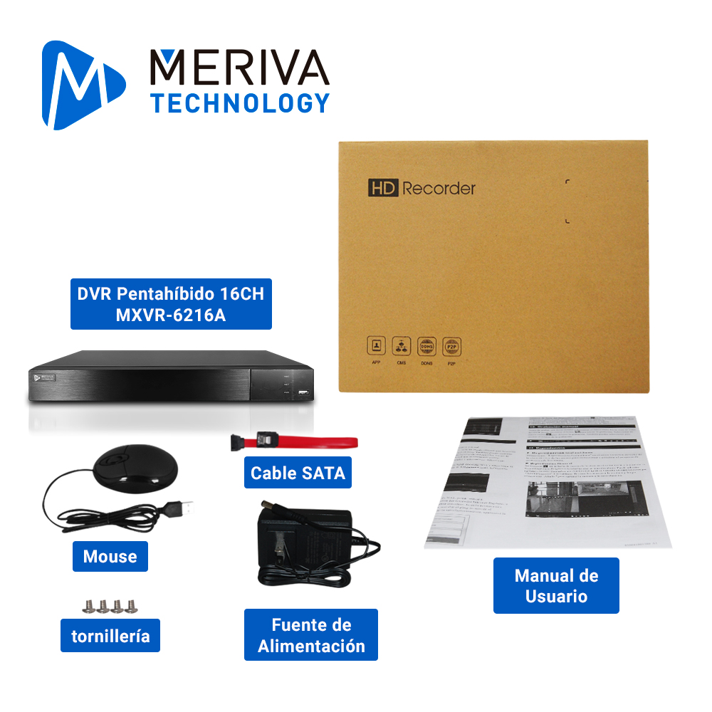 DVR MERIVA TECHNOLOGY MXVR-6216A HD H.265 24 CH 5MP PENTA HIBRIDO 16 CH BNC / 8 CH IP / SOPORTA AUDIO POR COAXIAL (SOLO POR TVI) / 1 CH ANALOGO CON INTELIGENCIA ARTIFICIAL El MXVR-6216A es un DVR Penta híbrido que soporta los formatos de video AHD, TVI, CVI y análogo en sus 16 canales BNC con una resolución de hasta 5 MP@20 fps y 8 canales IP de hasta 5 MP@30 fps en red, todo en un mismo equipo para obtener la máxima compatibilidad y resolución. El equipo adapta el formato de compresión de alto perfil H.265 en todos sus canales para garantizar la grabación en tiempo real y con mayor almacenamiento de información. Soporta audio por coaxial en todos sus canales BNC y un 1 CH BNC con analítica MIA 2.0 Cruce de línea e Intrusión (Humano/Vehículo). Caracteristicas: Soporta 16 CH BNC (TVI / AHD / CVI / CVBS) 5 MP (Excepto en CVI) / 4 MP / 2 MP / 1 MP / WD1. Soporta 8 CH IP 5 MP / 4 MP / 2 MP / 1 MP. Permite cambiar 8 CH BNC a 8 CH IP teniendo un máximo de 16 CH IP. Grabación de 5 MP Lite. Cuenta con interfaz gráfica de usuario intuitiva y amigable. Estándar H.265. Múltiples modos de grabación: manual / programada / movimiento / sensor / inteligencia. Reproducción: 16 CH simultáneos. Soporta preset y crucero en PTZ, hasta 255 presets y 8 cruceros. Soporta visualización remota por NAT. Función de inteligencia artificial basada en protección perimetral (Solo 1 CH análogo BNC). Entradas y salidas de alarma. Entradas y salidas de audio. Soporta Audio sobre Coaxial (AOC) (Únicamente por TVI). Soporta 2 HDD SATA de hasta 10 TB c/u, 1 E-SATA. Salida HDMI / VGA Full HD, BNC CVBS. Cuenta con puerto RS485 para control PTZ. Alimentación 12 VCD 4 A. Función de Audio por Coaxial: El término AOC (audio sobre coaxial) se refiere a una conexión de audio que utiliza un cable coaxial para transmitir la señal de audio entre dispositivos, como cámaras de video y grabadores "DVR". Como tal el AOC (audio sobre coaxial) la transmisión simultánea de la señal de video y de audio viajan a través de un solo cable. Esto significa que no se requiere un cable adicional o una conexión separada para transmitir el audio. Para poder usar el audio a traves del cable coaxial, es necesario contar con equipos compatibles que admitan esta función.